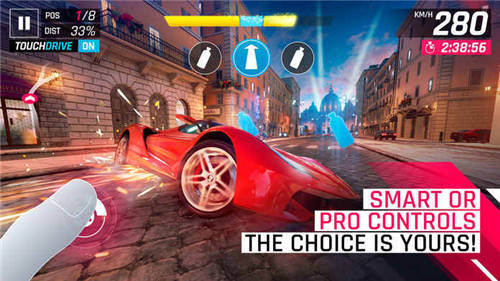 全新TOUCH DRIVE操作将帮你简化转向操作,让你专注于竞速的快感!但你也可以切换到手动控制(重力感应或点击转向),成为更专业的《狂野飙车》赛车手!